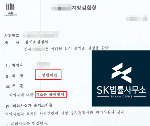 검찰은 본 변호인의 주장을 받아들여, 의뢰인이 부대 내 관행을 따르다 우발적으로 범행에 이르게 된 점, 상급자의 묵시적 동의가 있었던 것으로 오인할 만한 사정이 있는 점 등을 참작하여 불기소(기소유예) 처분을 결정하였습니다.