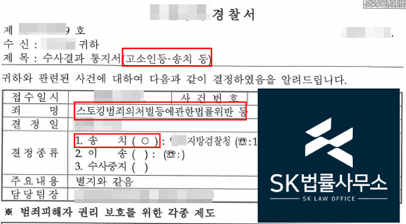 경찰은 본 변호인의 주장을 받아들여, 피고소인의 행위가 스토킹범죄에 해당한다고 판단하여 송치 결정하였습니다.