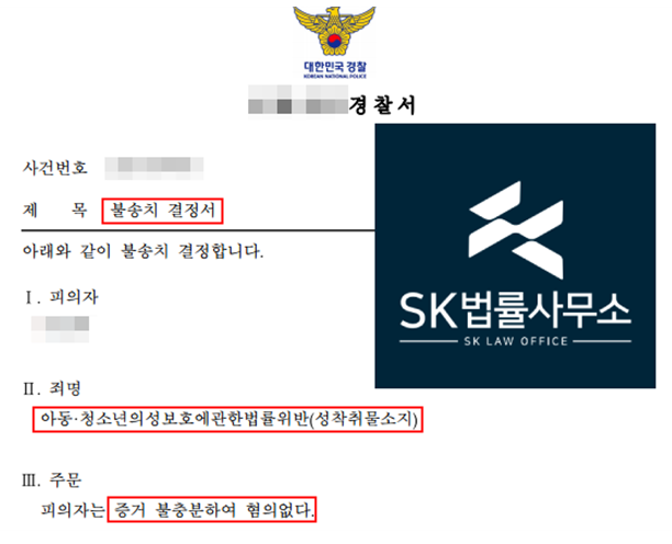경찰은 변호인의 주장을 받아들여 ▲의뢰인이 혐의를 강력히 부인하고 있고 ▲판매자에게 송금한 사실 외에 실제 성착취물을 전송받아 소지했다는 점을 입증할 증거가 없다고 판단했습니다.