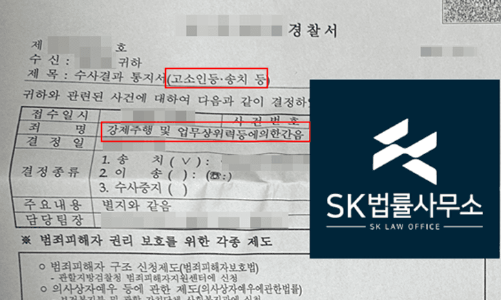 경찰은 변호인의 주장을 받아들여, 비록 의뢰인이 숙박업소에 동행한 사실은 있으나 이는 대표의 위력에 의해 의사가 제압된 상태에서 벌어진 일이라고 판단했습니다. 또한 꽃뱀 주장 역시 근거 없음을 인정하여 피고소인을 기소의견으로 검찰에 송치하였습니다.