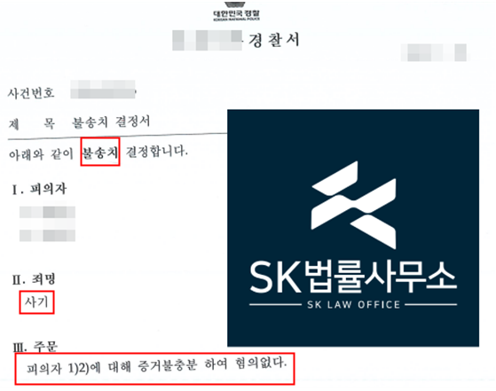 경찰은 본 변호인의 주장을 받아들여 사기 혐의에 대하여 불송치(혐의없음) 결정하였습니다.