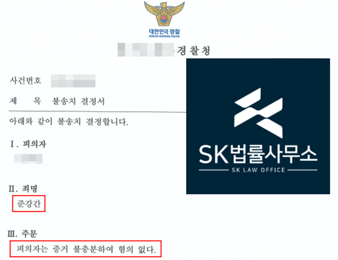 경찰은 본 변호인의 주장을 받아들여 준강간 혐의에 대해 불송치 결정하였습니다.